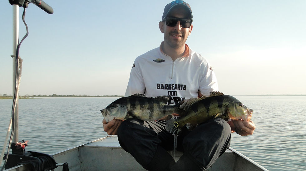 Partimos para um ponto que prometia muito, com estrutura perfeita, então começamos a bater isca e nada de ação, Eu e o Carlos, comentávamos que não era possível não ter ação, pois era perfeito. O Carlos então começou bater isca de meia água, e as ações começaram acontecer, mas não era o que queríamos, era piranha, então eu continuei batendo isca de superfície e então tomei uma pancada de uma bruta de uma trairá, que chegou sair da água, mas não engatei. Decidimos mudar de ponto e ao chegar no ponto, tinha vários pescadores de varinha de mão, mesmo assim começamos bater isca, e de repente tomei uma pancada, aonde consegui ver o Amarelão saindo da água, tomei um baita susto, porem não engatei novamente, então o Carlos continuou batendo isca ali, e conseguiu fisgar o danado, numa baita pancada, briga foi boa, correu para sujeira, eu corri já com o elétrico encima, peguei na linha e consegui tirar o danado de la, o Carlos começou a brigar com ele e novamente ele foi para sujeira, enfim conseguimos embarcar o amarelão para nossa alegria, um peixe fisgado em parceria.